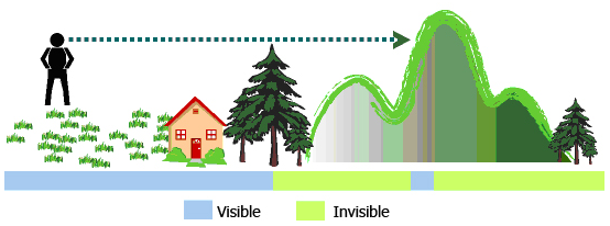 See the figure in the upper left side, we know the elevation of the triangulation station but do not know which location is visible for it. See the figure in the upper right side, overlap the layers that is performed with Viewshed analysis, transparency and hillshade analysis with the terrain map, we can realize easily the relationship between the observer point and terrain.