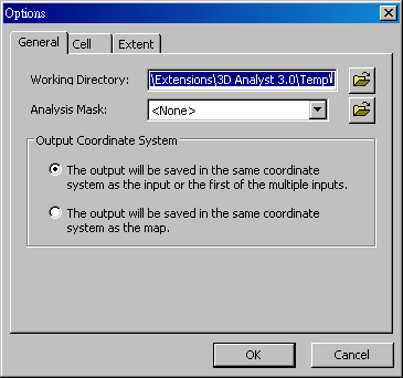 General Before analyzing, users are allowed to modify the default settings of analyzing environment in "Options" window, including exporting "Working Directory", "Analysis Mask" and "Output Coordinate System."