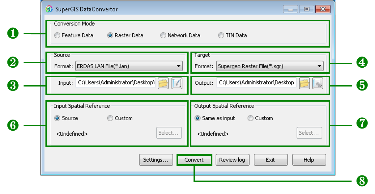 SuperGIS DataConvertor allows the conversion between the 8 common raster formats and ASCII File (*.txt) and SGR format. Following the steps, you will be able to convert the common raster formats or ASCII File (*.txt) to SuperGeo’s SGR format with SuperGIS DataConvertor easily.