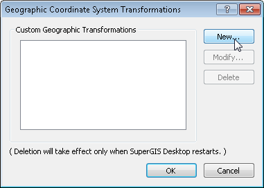 NOTE: Deletion of transformation settings takes effect only when SuperGIS Desktop restarts.