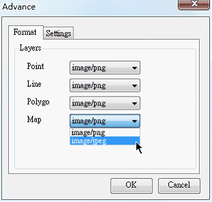 2.Assign the file format for each layer in the Format tab. By default, it is image/png.