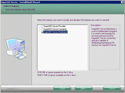 Note: To uninstall program through control panel will remove all the related SuperGIS Server objects, including SuperGIS Server Provider, SuperGIS Server Container and SuperGIS Server Maintainer. If you only want to remove some specific object, please refer to Uninstall Server Side Object with Installation Disc.
