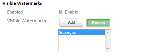 5.Click Add on the right side of Visible Watermarks list, enter the name of the visible watermark to add and click Done and a visible watermark is added to the list. Check Enable to activate the visible watermark settings.