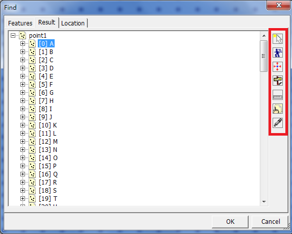 3.There are seven buttons in the row on the right side of the result dialog box. A feature should be selected first, and then the seven buttons can function.