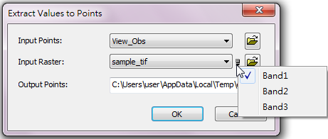 Extract Values to Points enables users to get raster information through the input of points. The data processed with "Extract Values to Points" will be output as point layer and the raster information will be saved as the attributes.