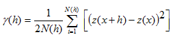 Assuming that Z(x) is a regionalized random variable and satisfies Second-Order Stationary and Intrinsic Hypothesis, h is the spatial distance between any two samples, Z(xi) and Z(xi+h) are the observed values of the regionalized variable Z(x) at the spatial location xi and xi+h (i=1,2,…., N(h)), respectively, the equation is: