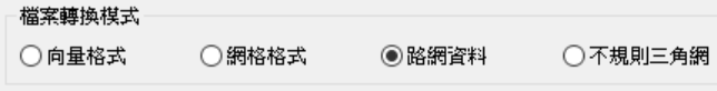 於「 檔案轉換模式」的「路網資料」模式下,您可以選擇從SuperGeo Format(*.geo) 或是ESRI Shape(*.shp) 轉換至崧旭資訊自行定義的 NRT 路網資料,以進行路網分析相關作業之用。