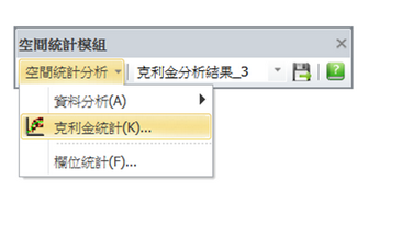 1.加入欲分析的圖層至SuperGIS Desktop,點選「空間統計模組」,開始進行載入圖層之空間統計分析。